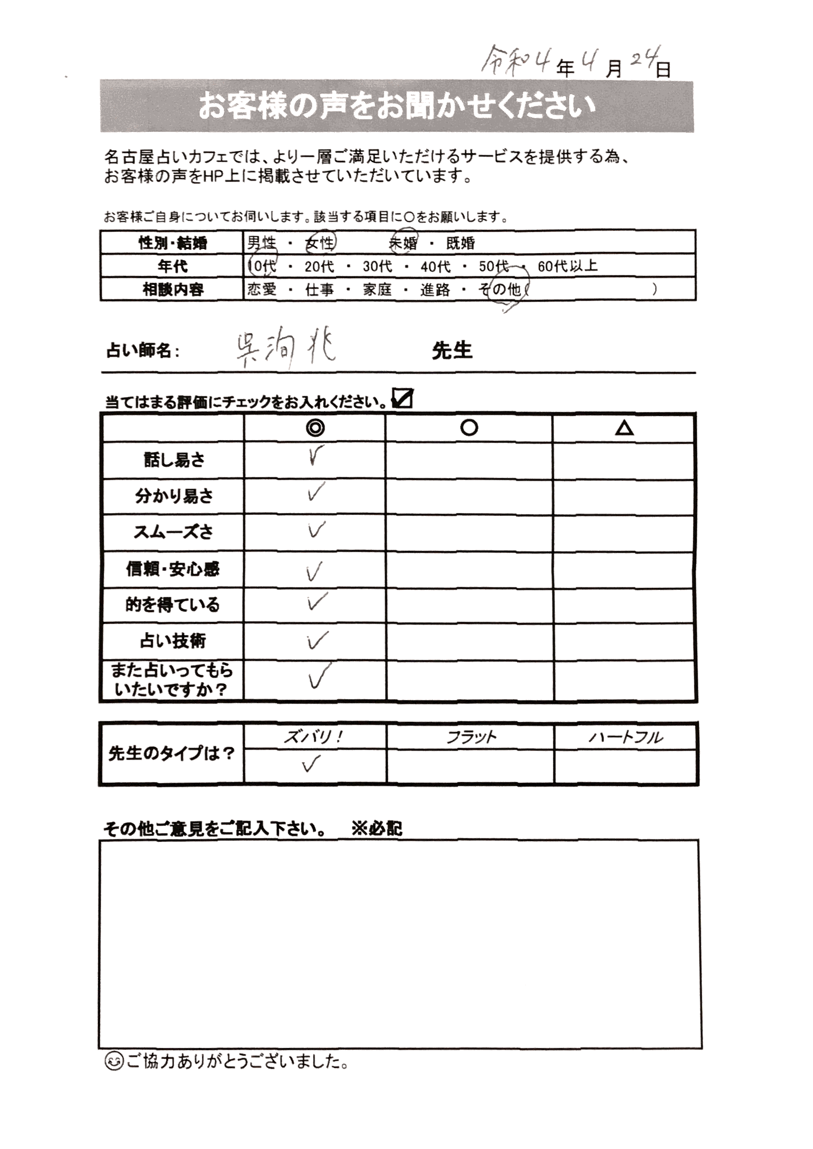 こちらの占い師に占ってもらった方は、口コミを投稿してみませんか?