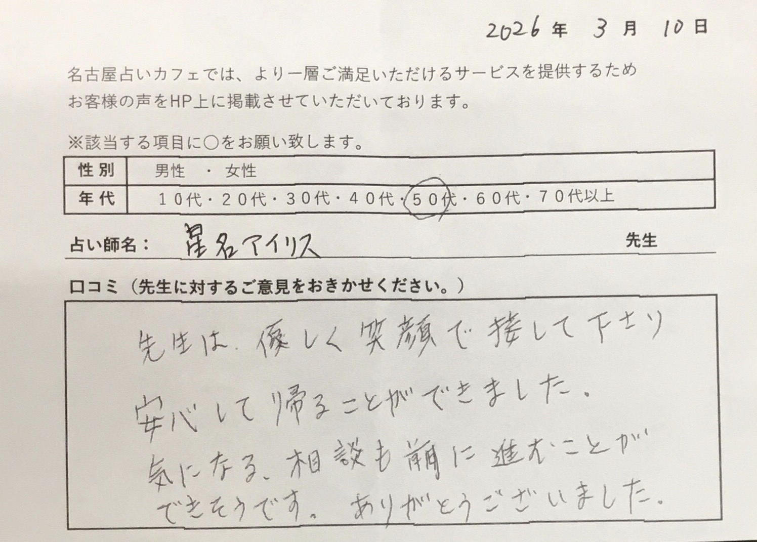 ⭐占いカフェからのコメント⭐