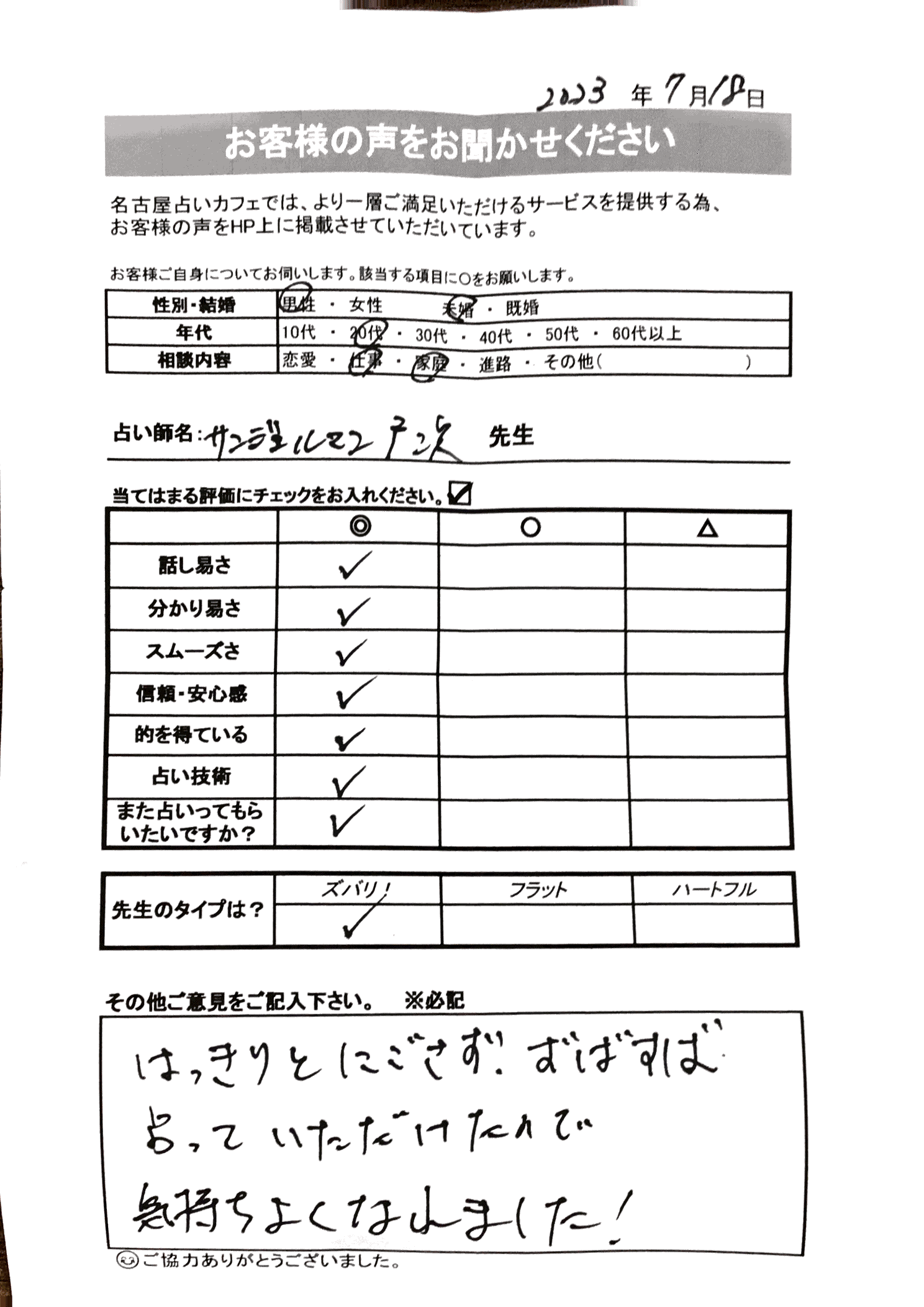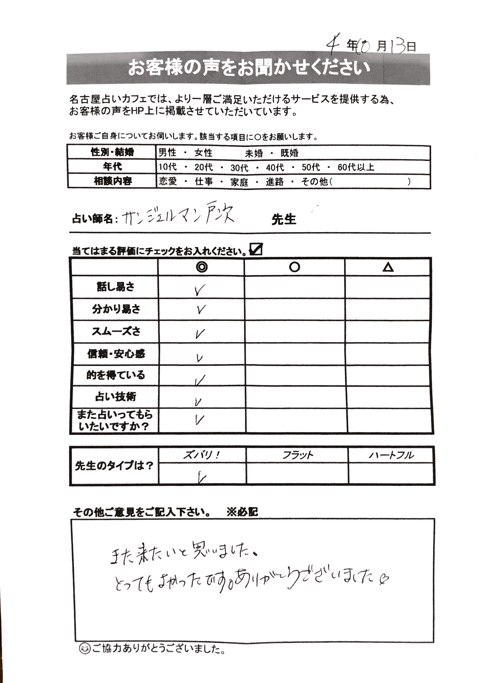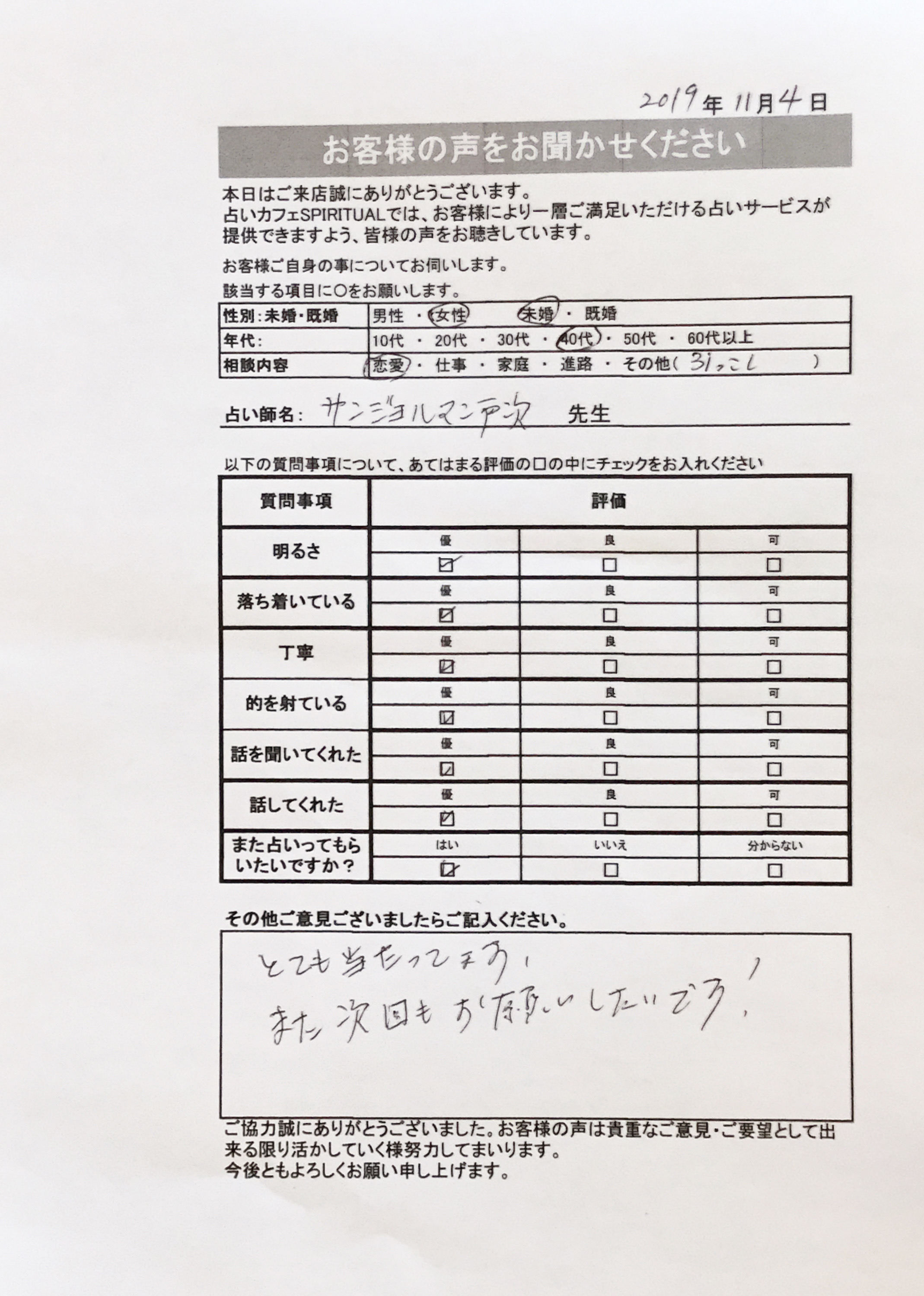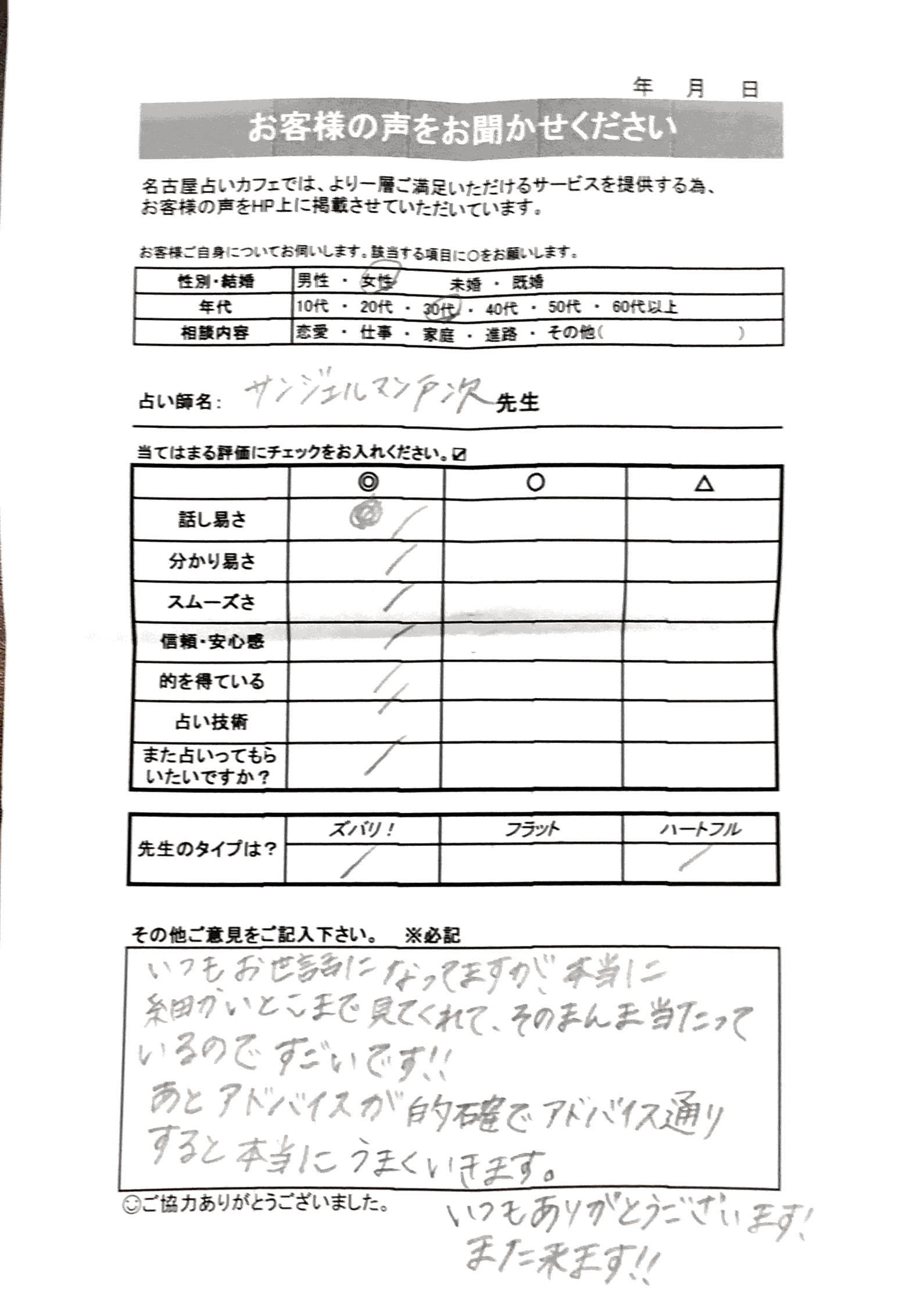いつも名古屋占いカフェをご利用いただき、誠にありがとうございます。