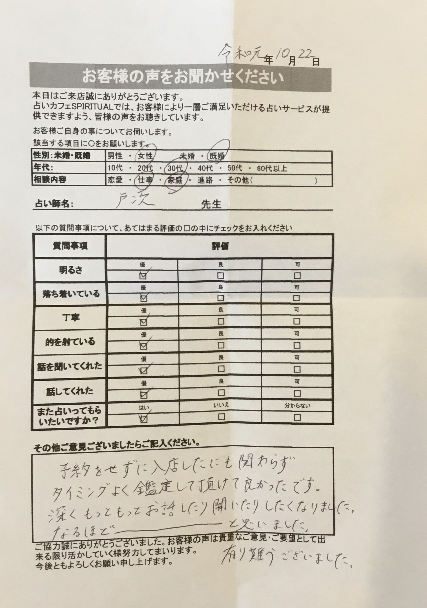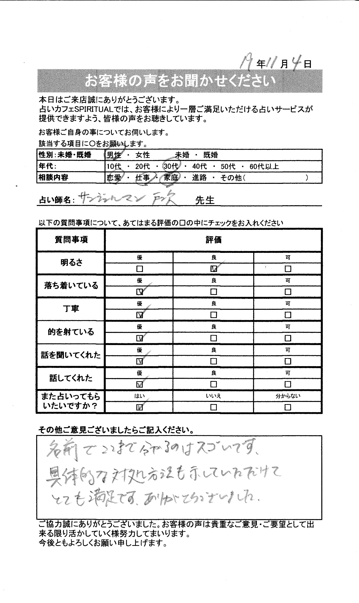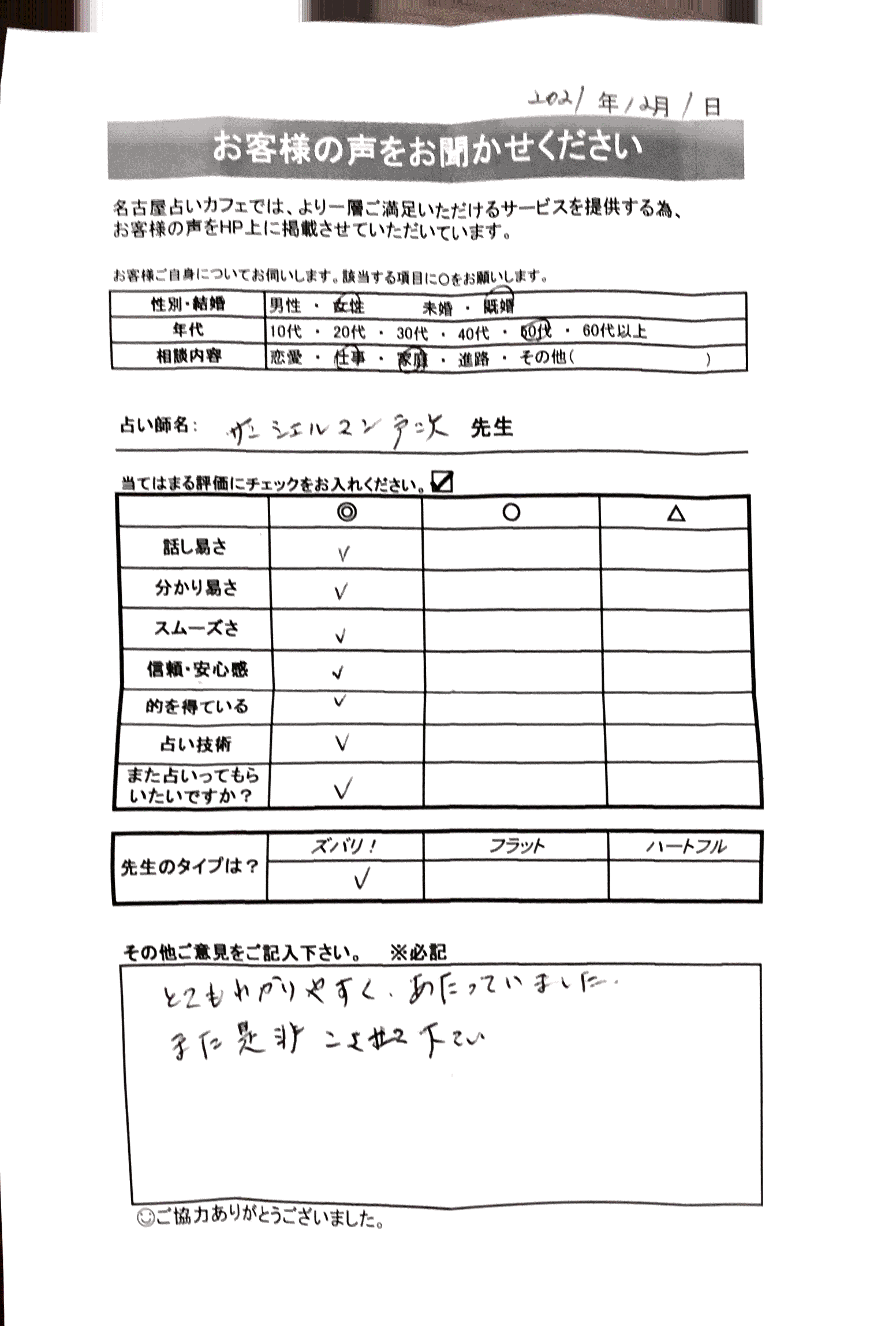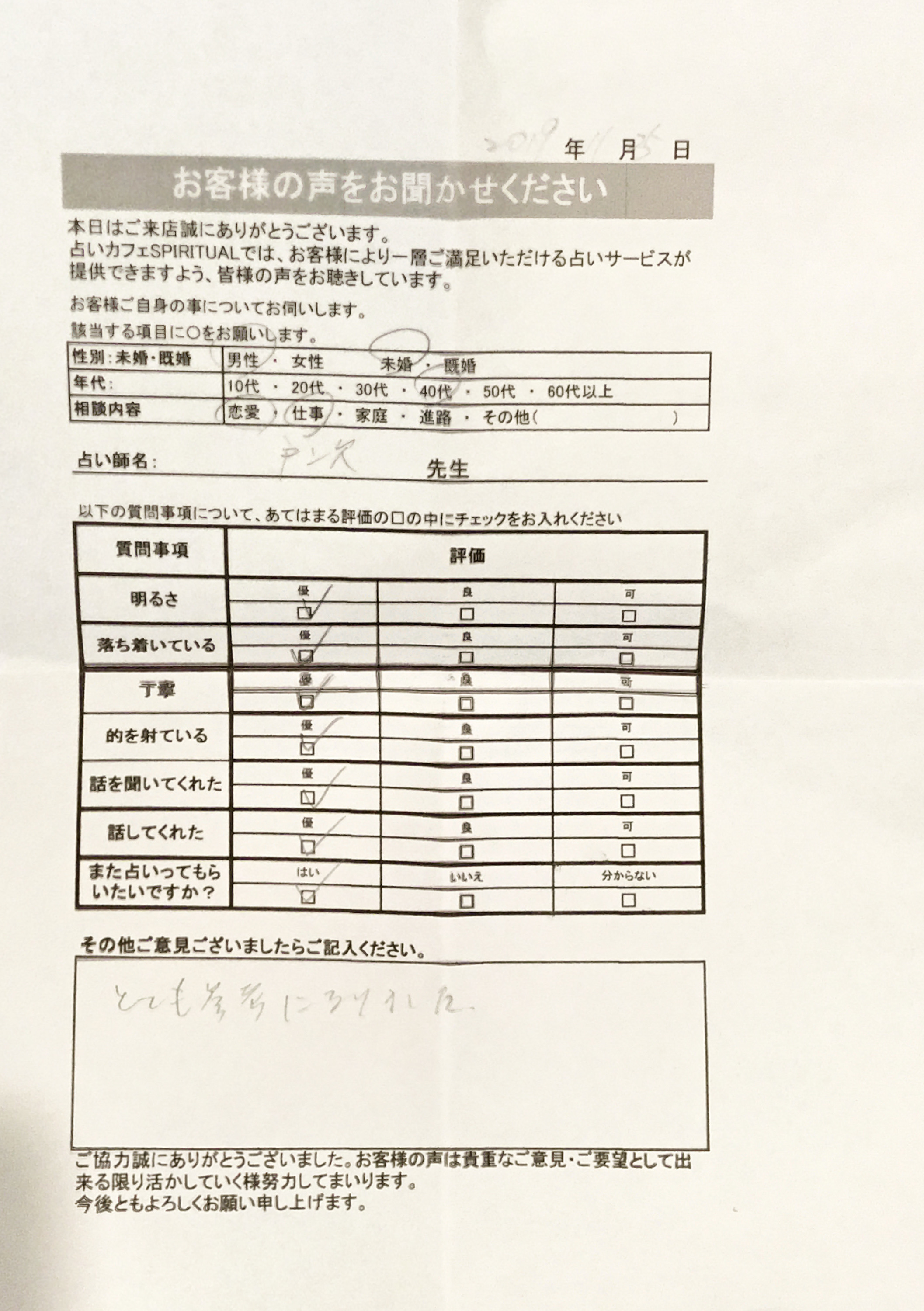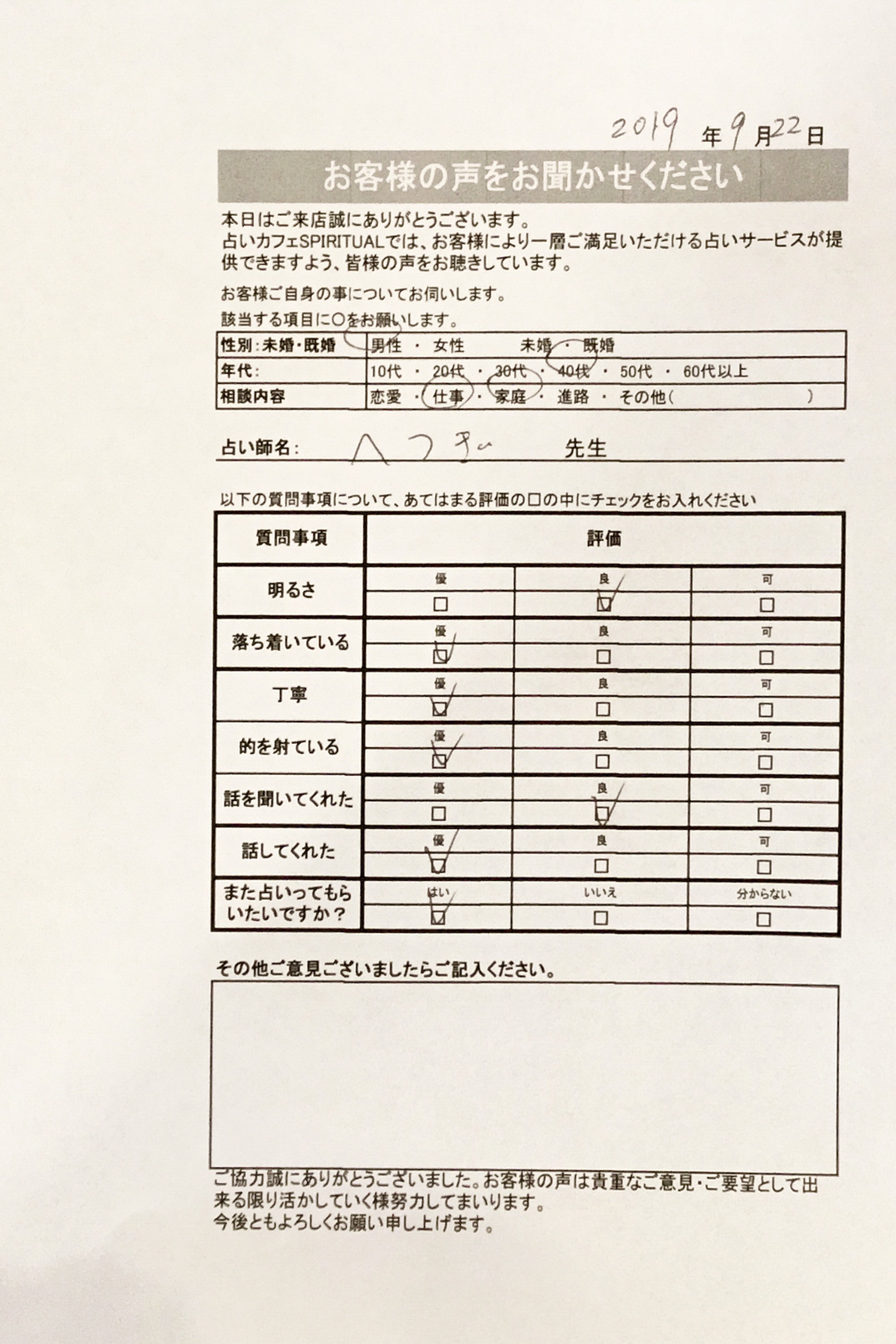 いつも名古屋占いカフェをご利用いただき、誠にありがとうございます。