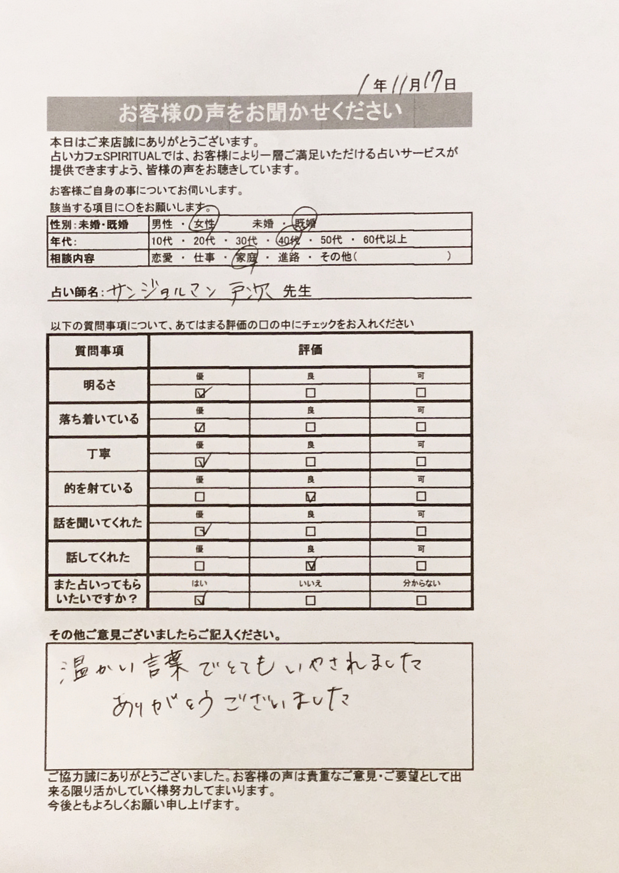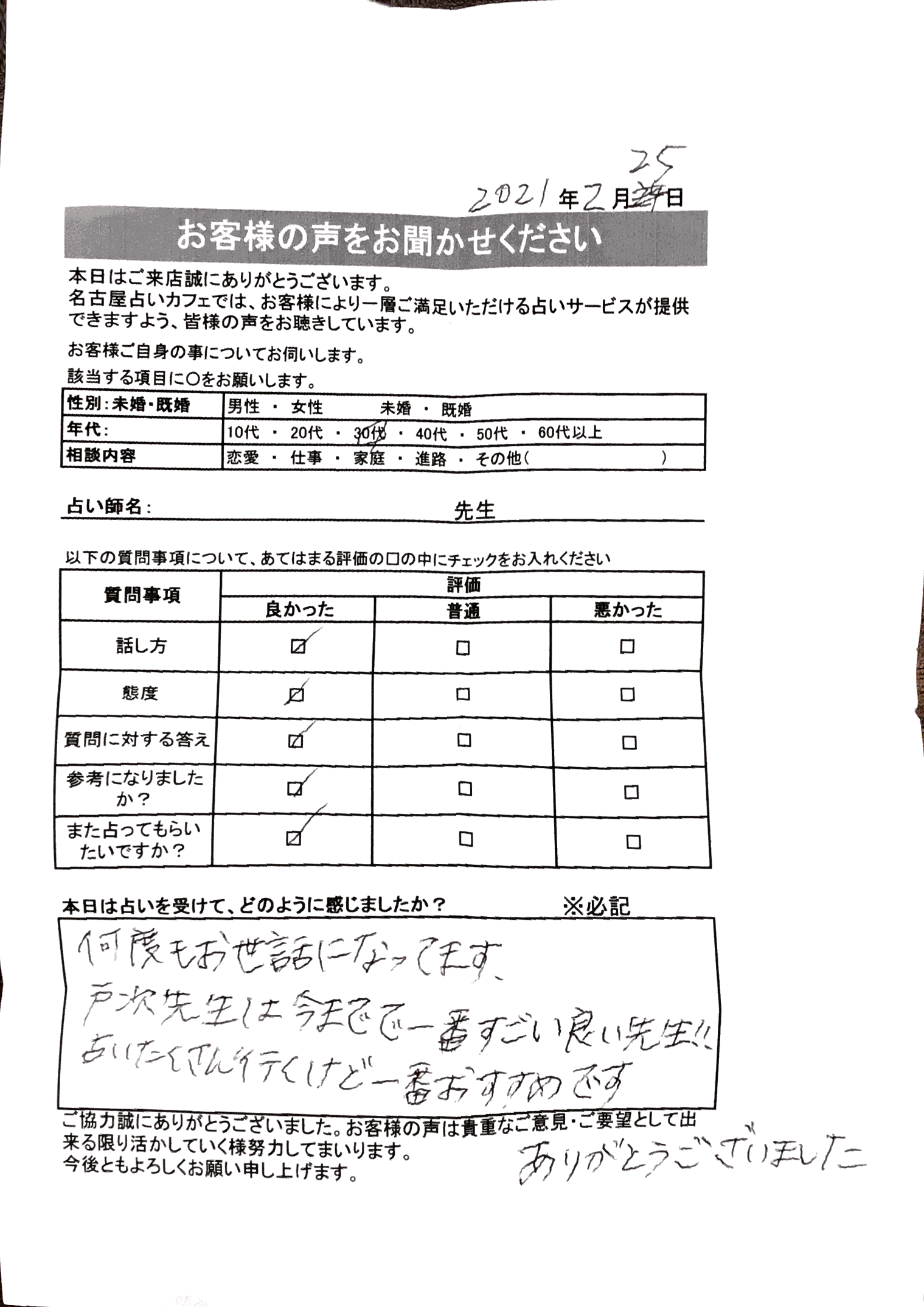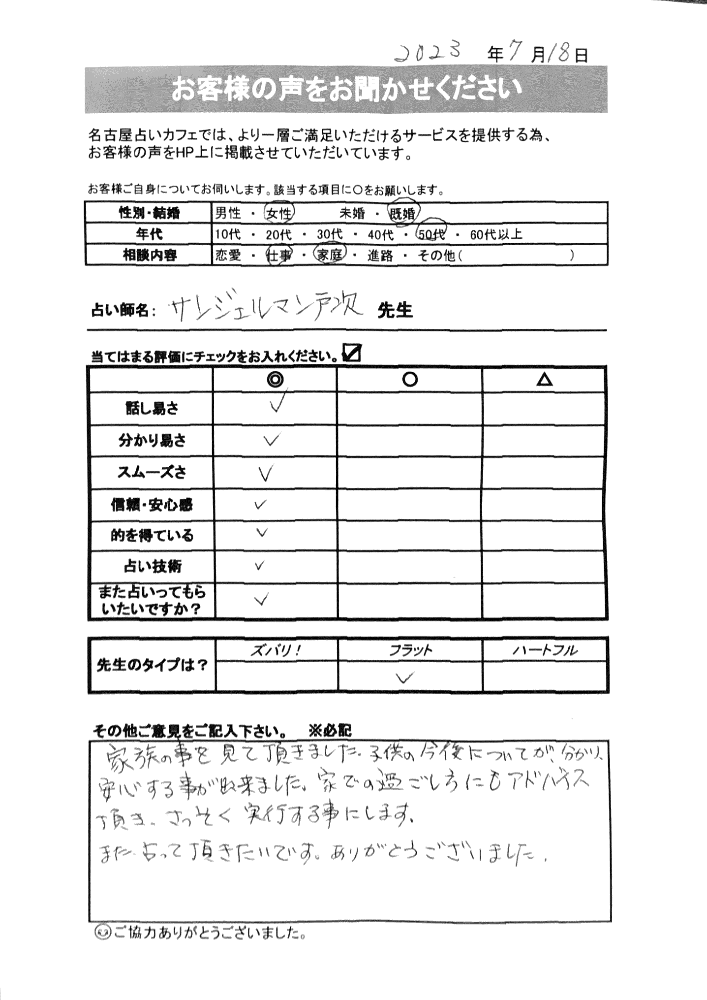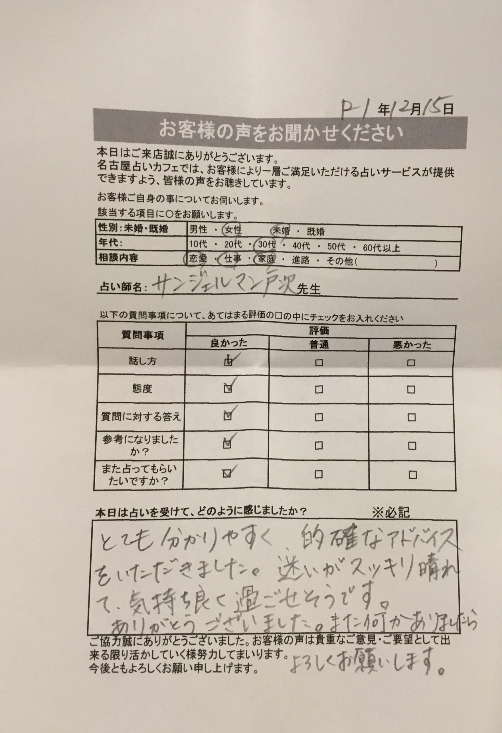 いつも名古屋占いカフェをご利用いただき、誠にありがとうございます。