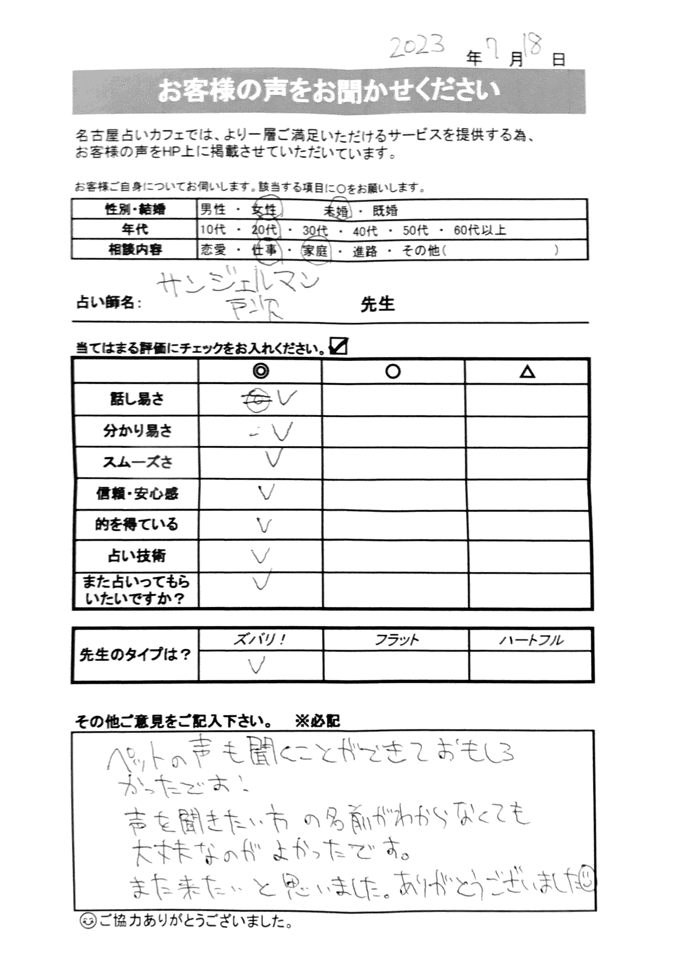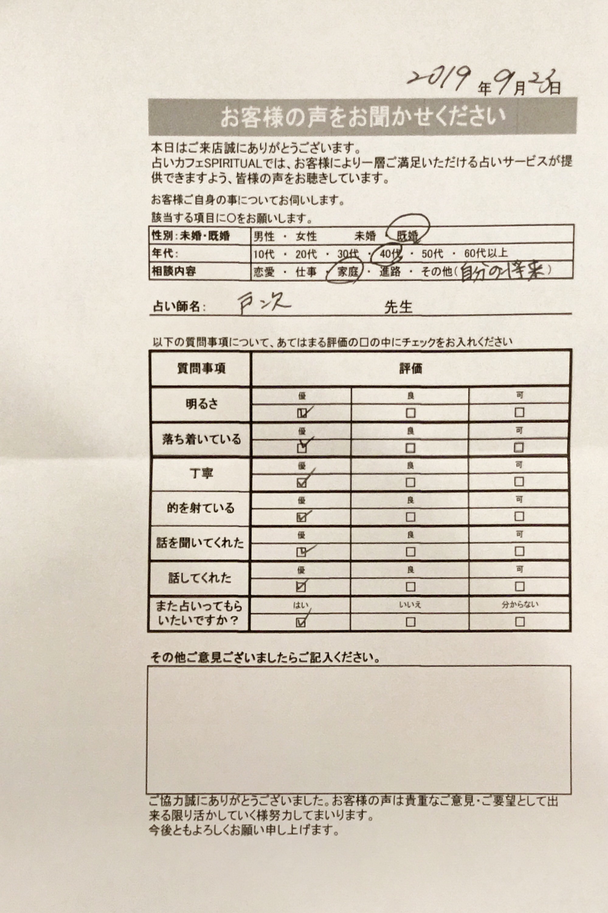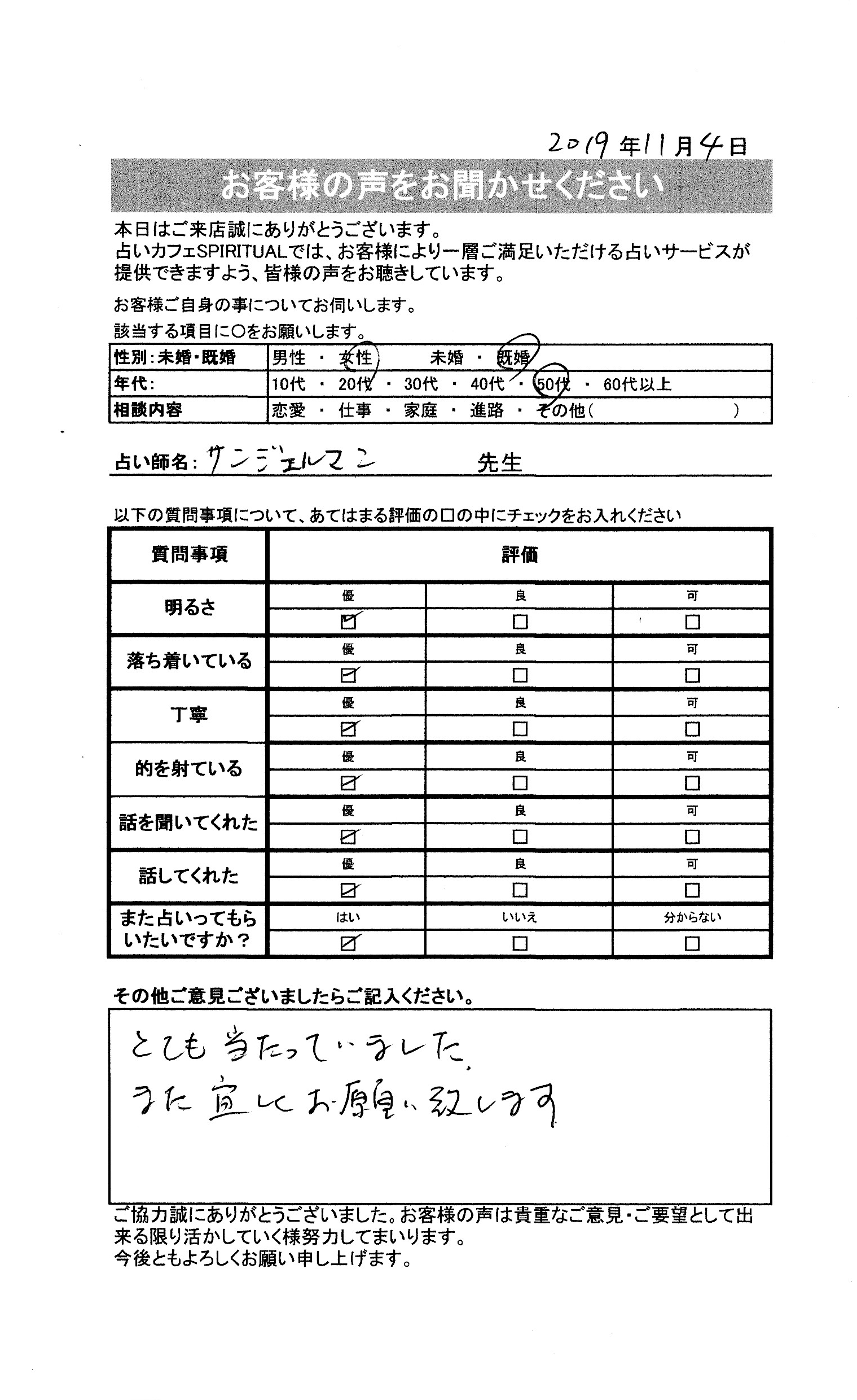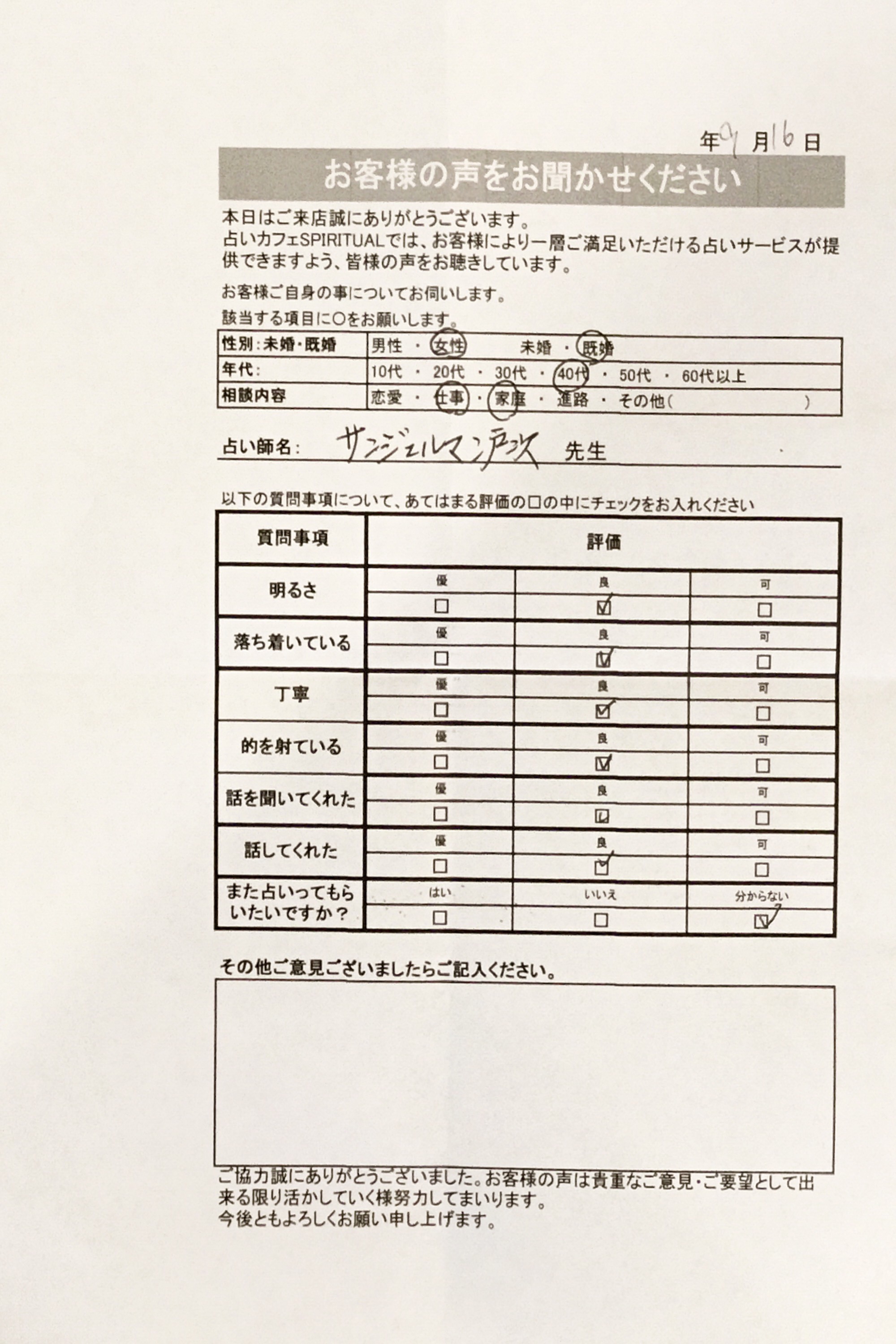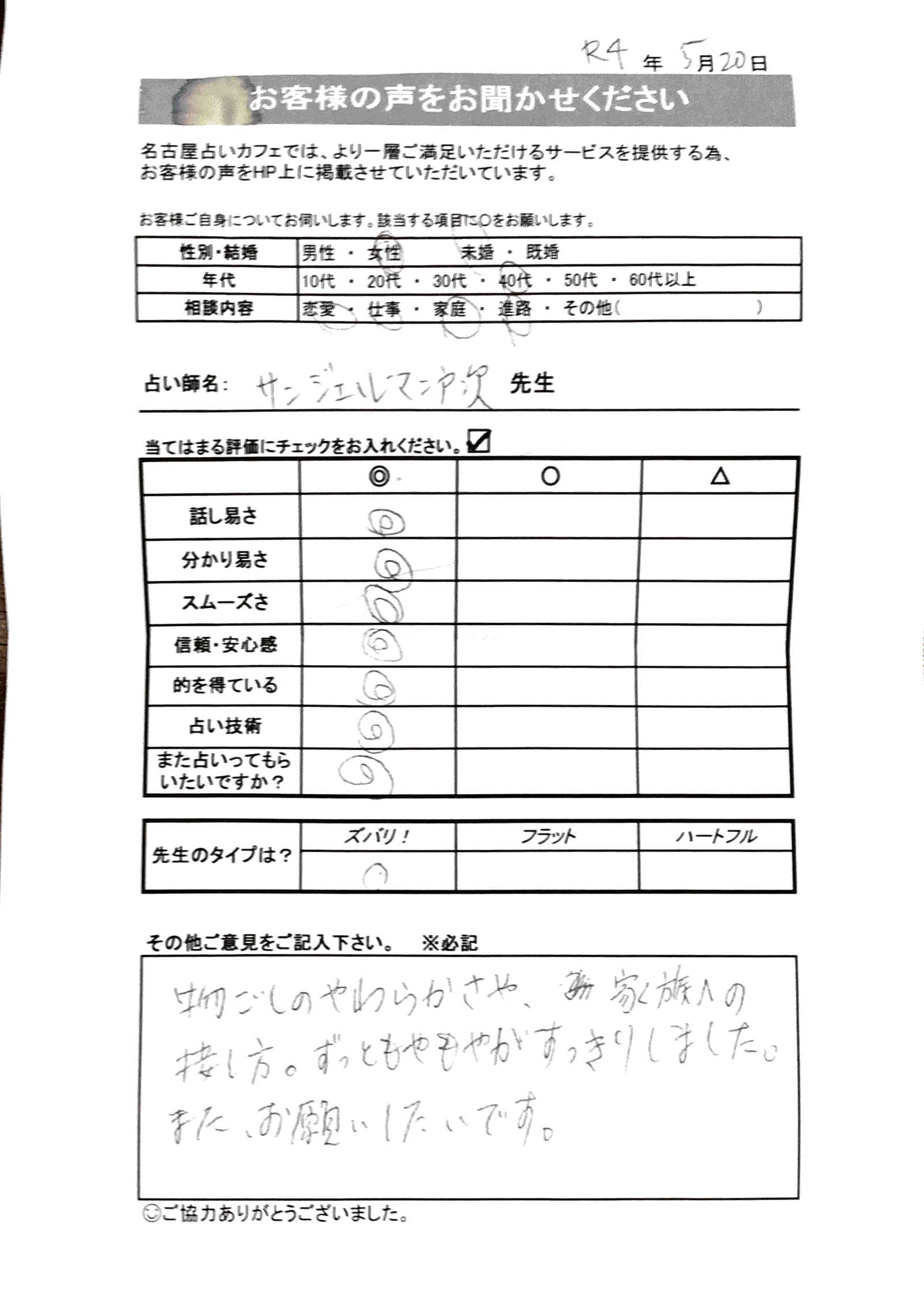 いつも名古屋占いカフェをご利用いただき、誠にありがとうございます。
