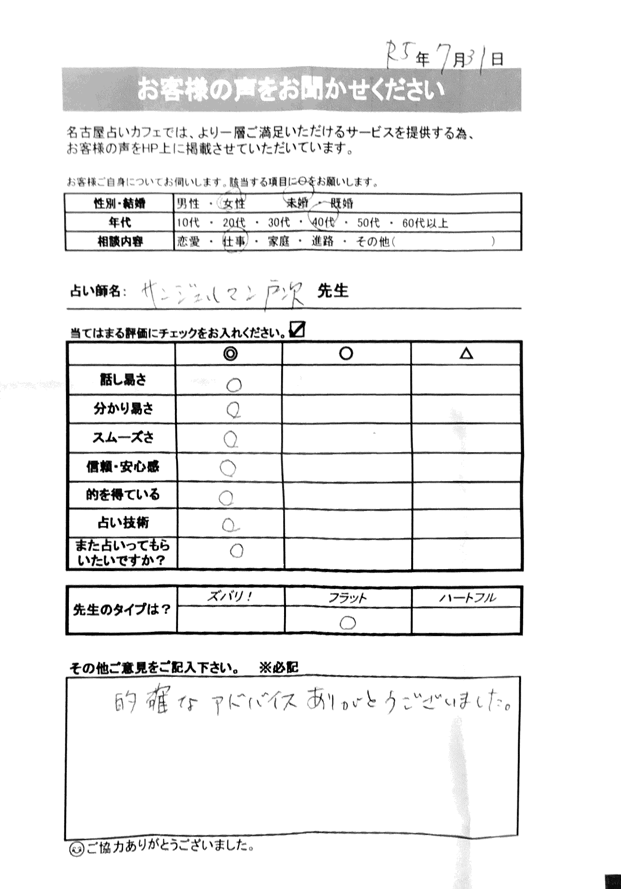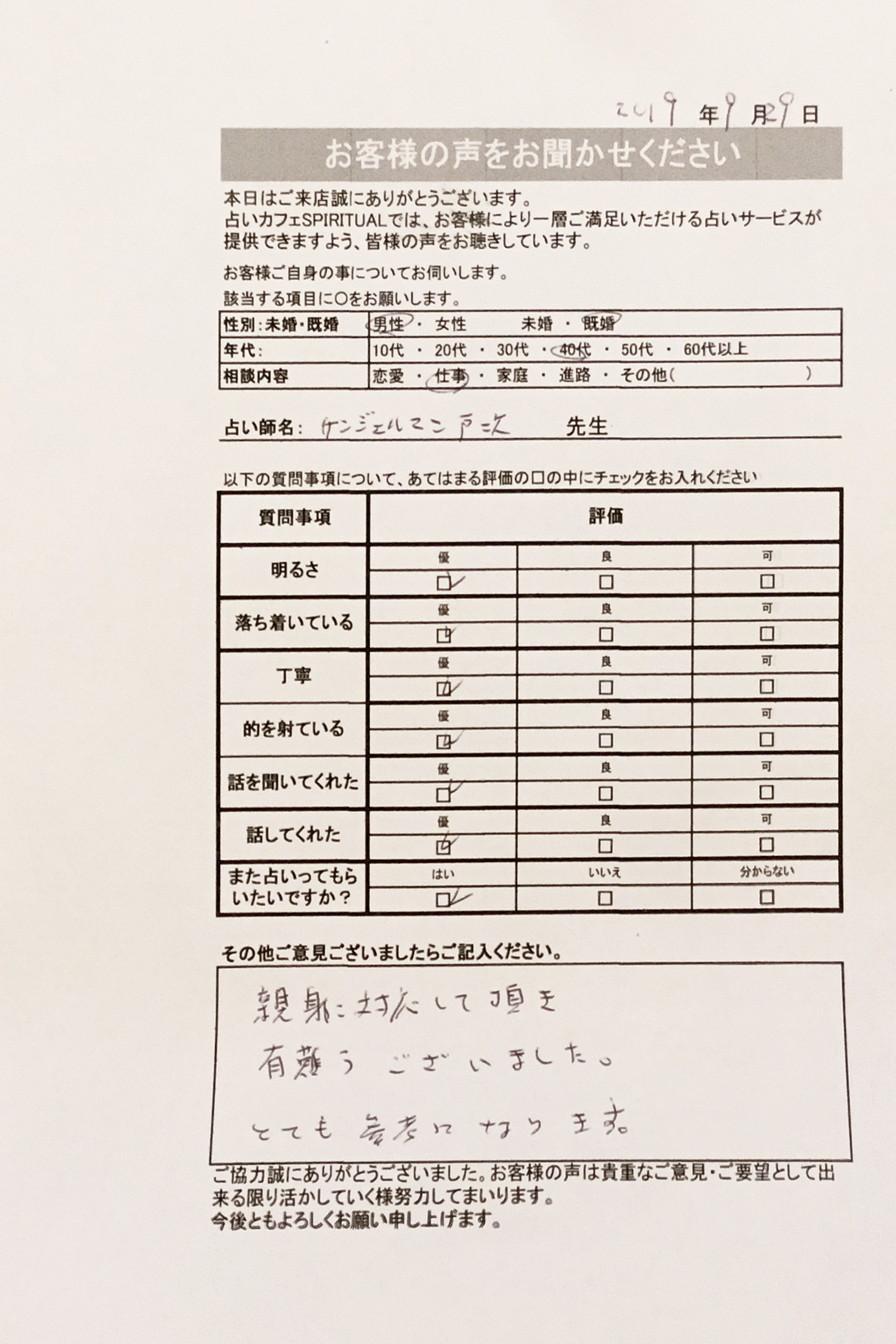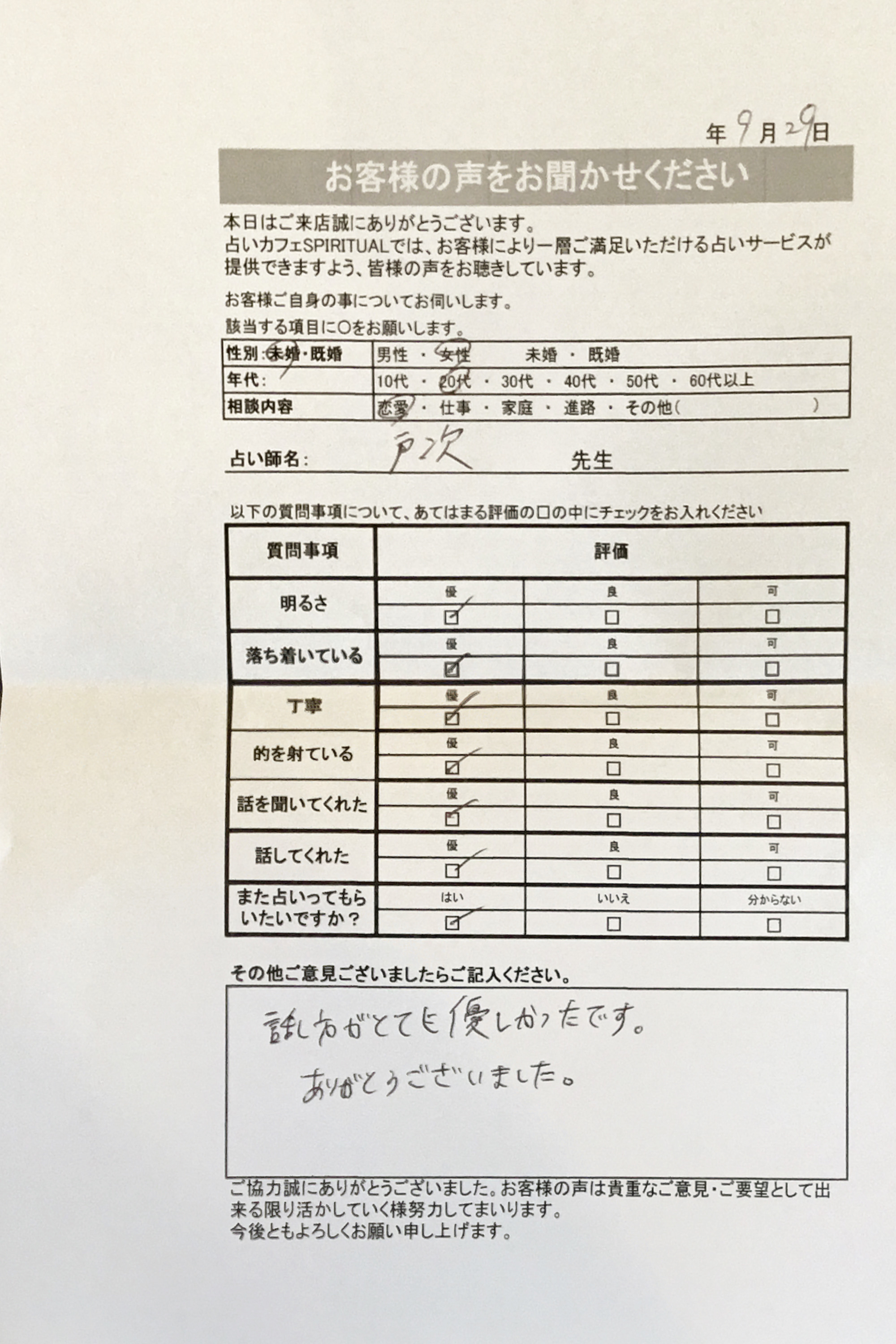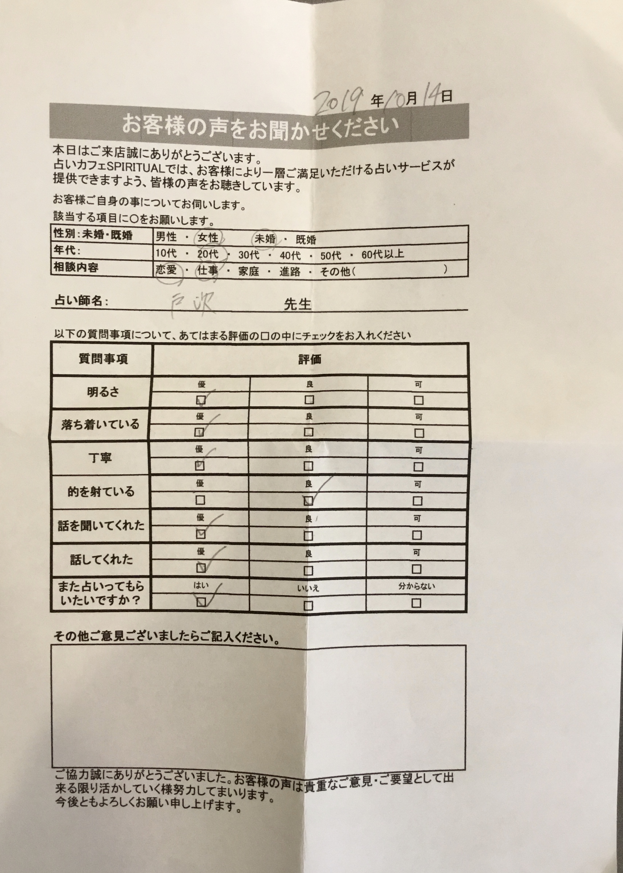 いつも名古屋占いカフェをご利用いただき、誠にありがとうございます。