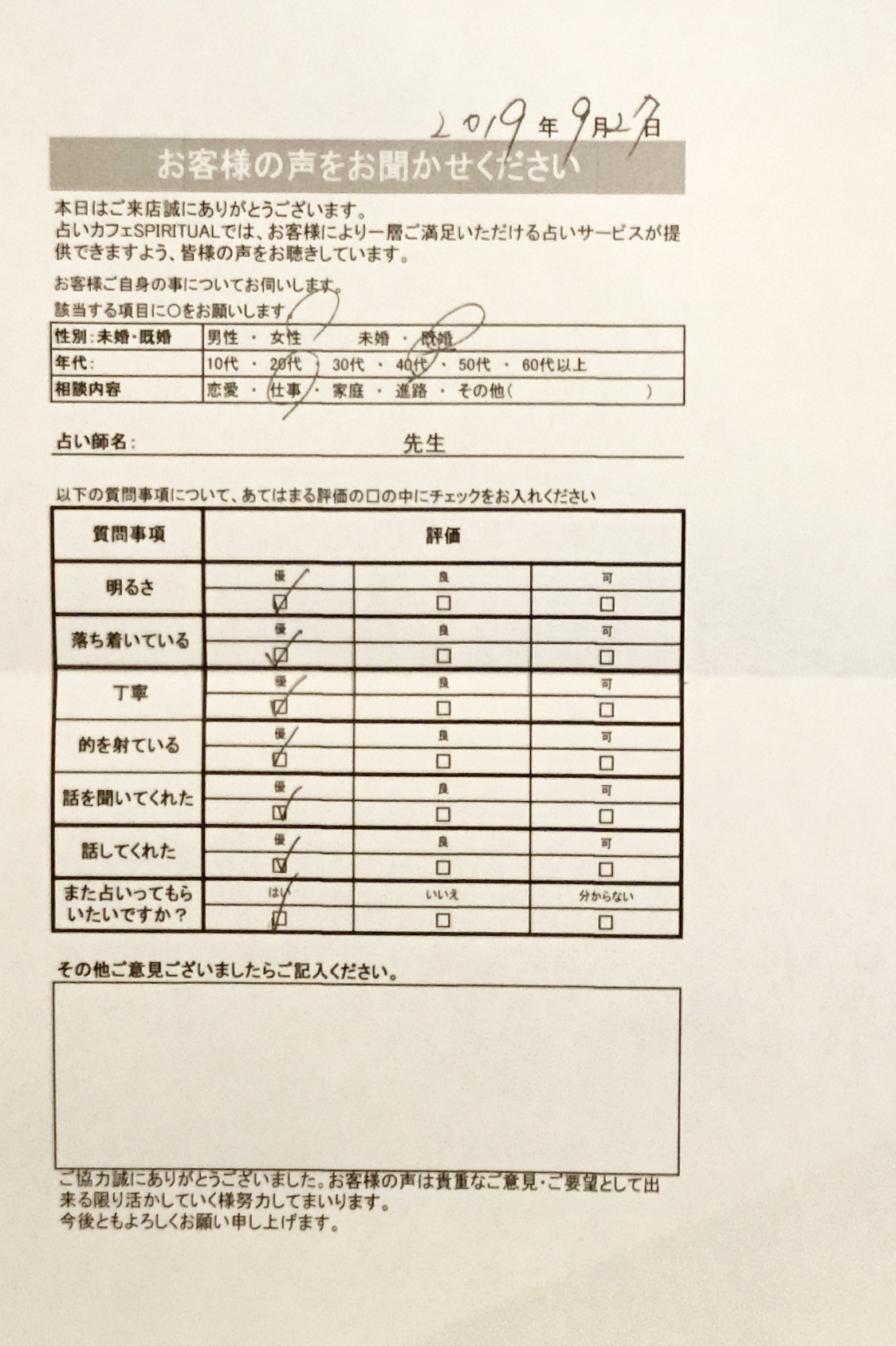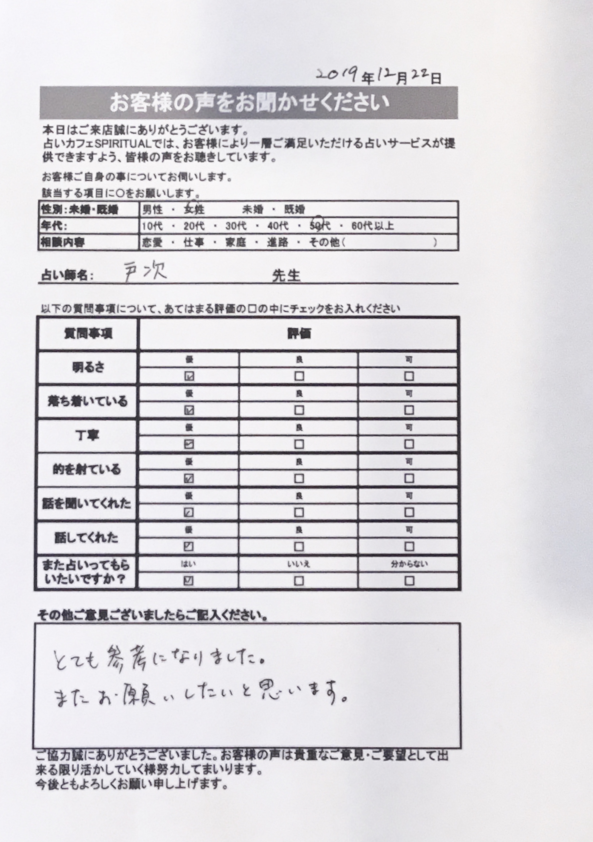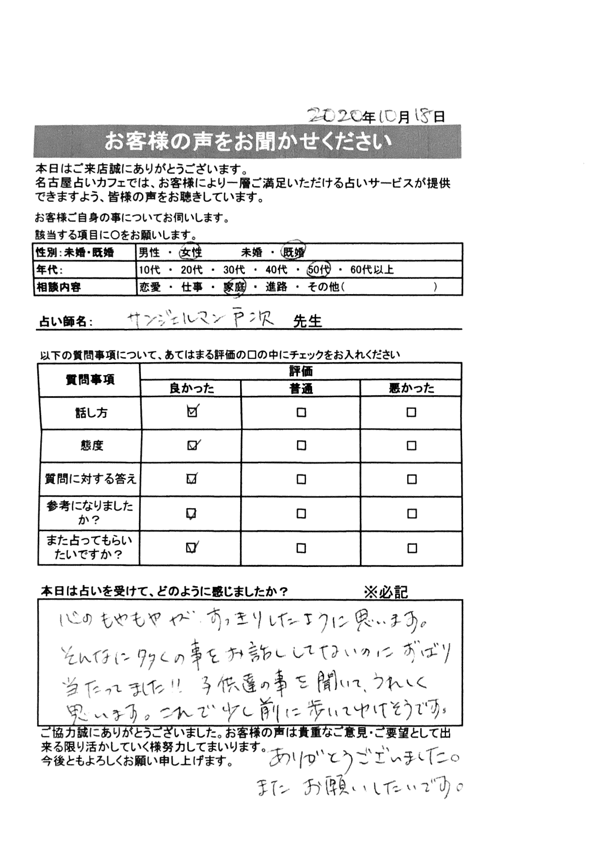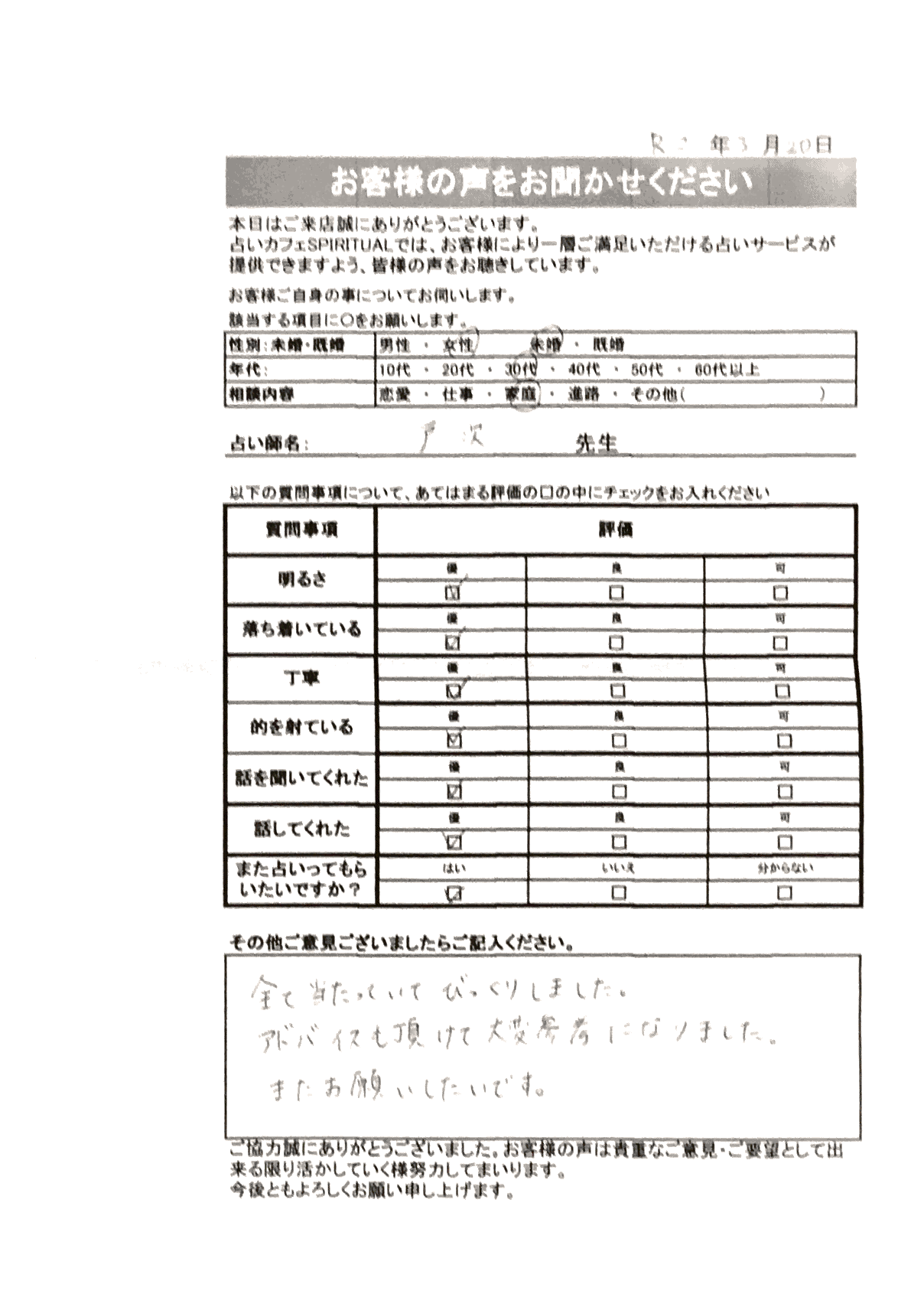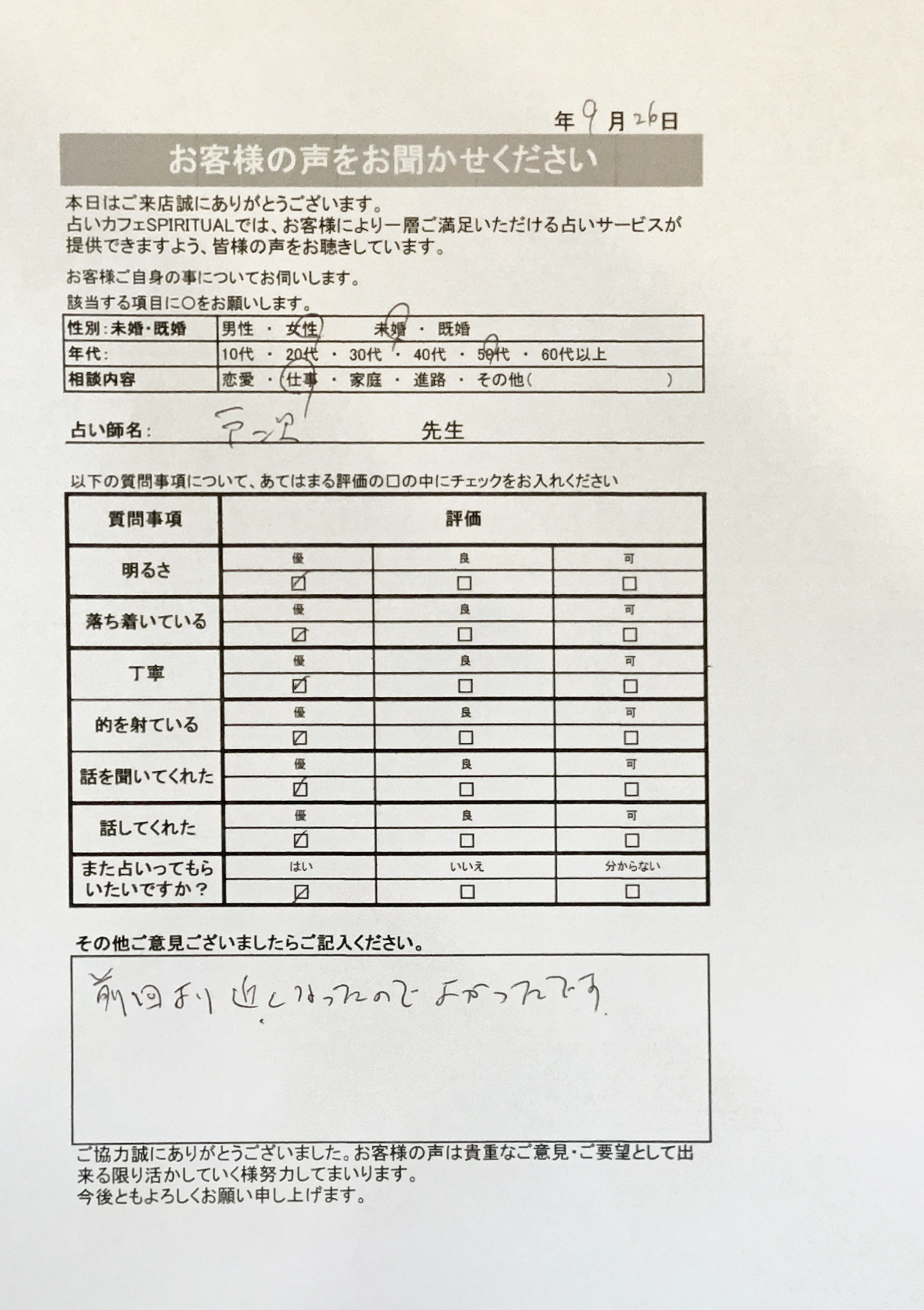 いつも名古屋占いカフェをご利用いただき、誠にありがとうございます。