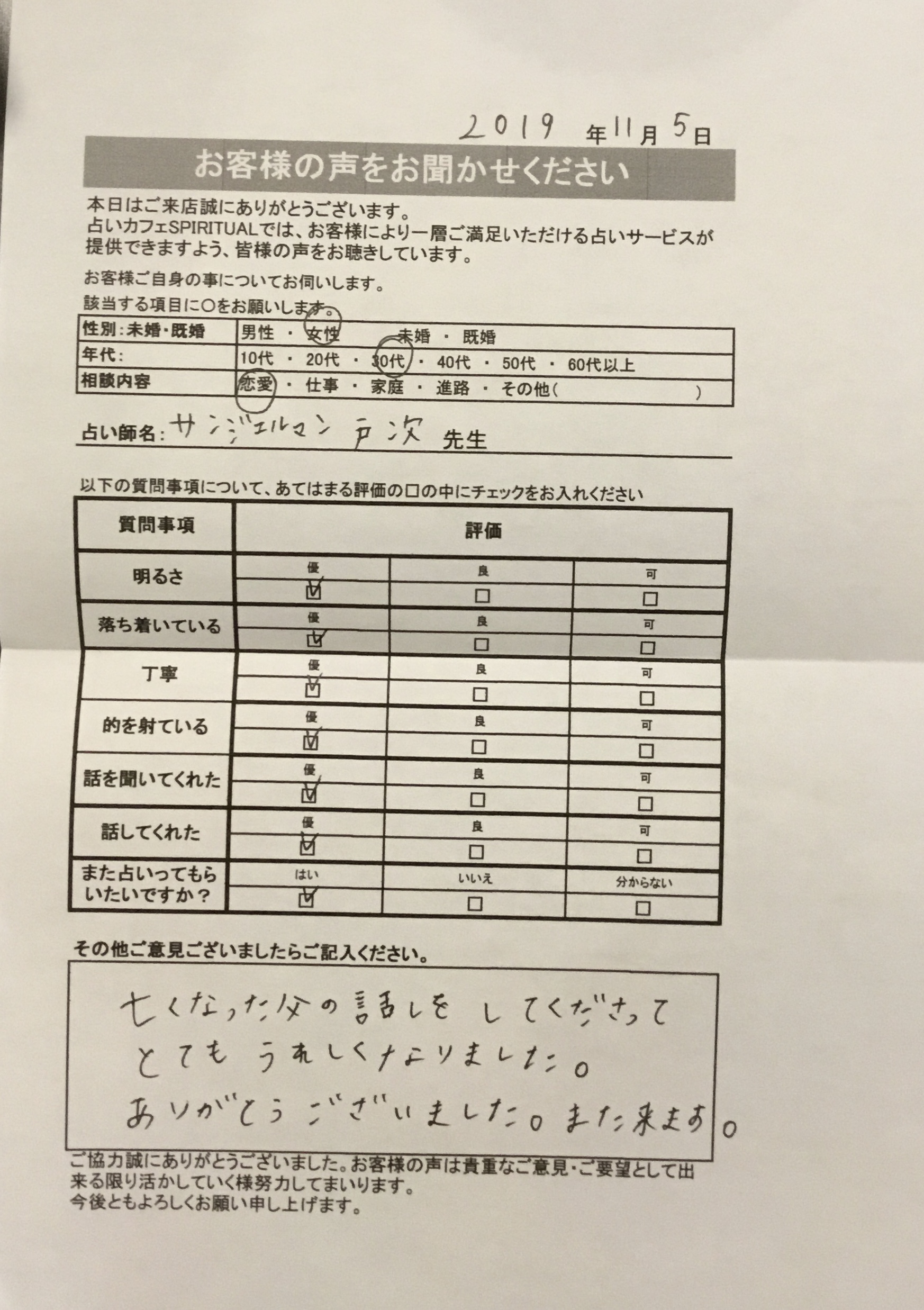 サンジェルマン戸次先生の鑑定、、驚きの連続でした!