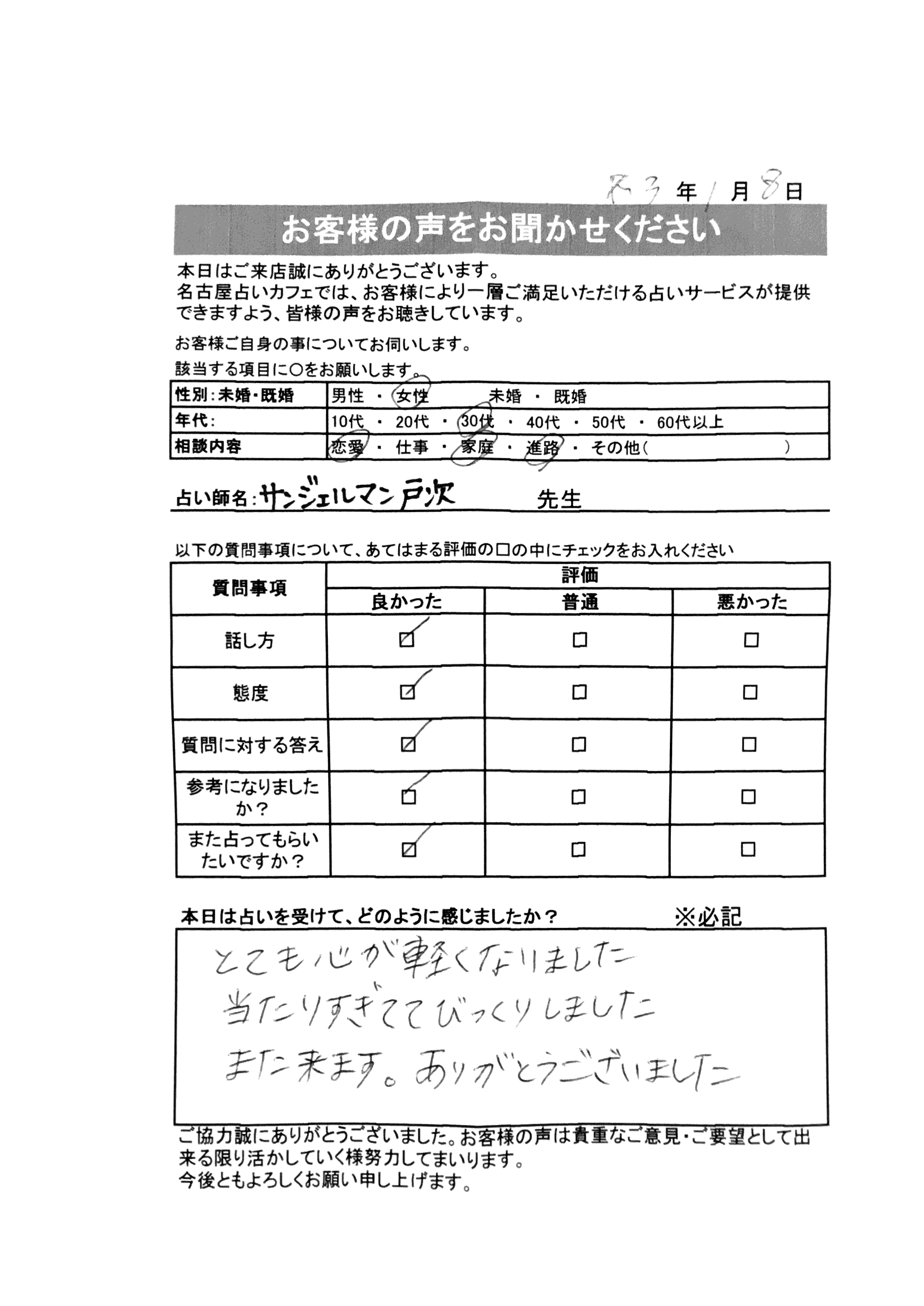 引き続き、サンジェルマンヘツギ先生ならびに名古屋占いカフェをよろしくお願いいたします。