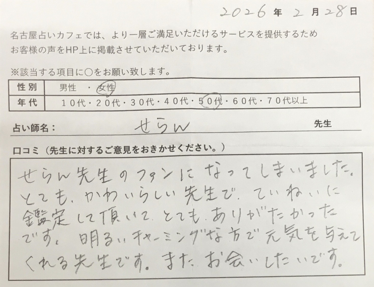名古屋占いカフェへ【世蘭先生】として移籍されました。