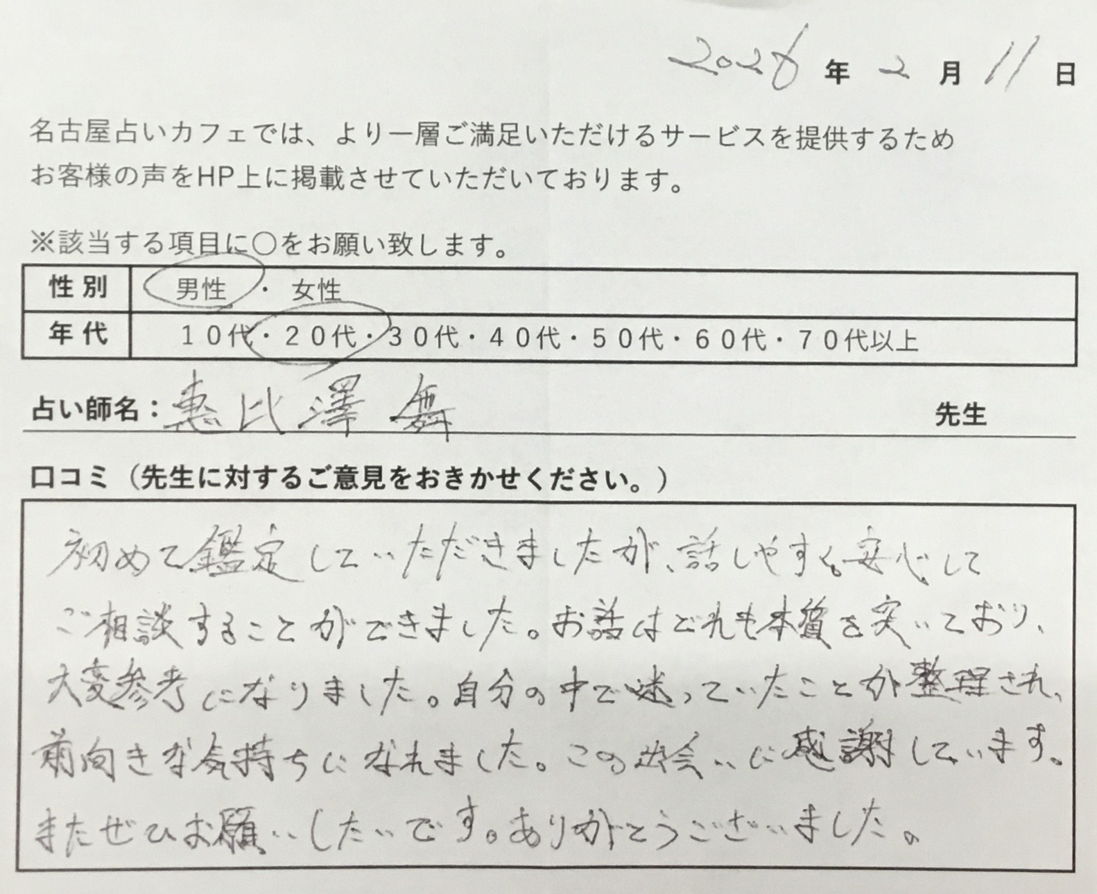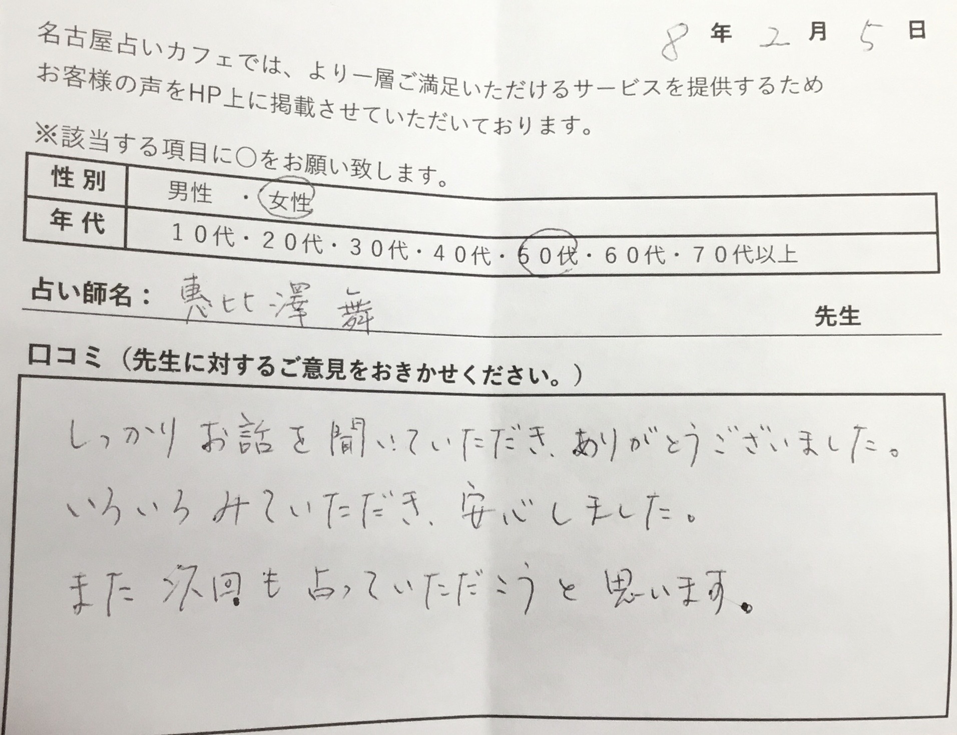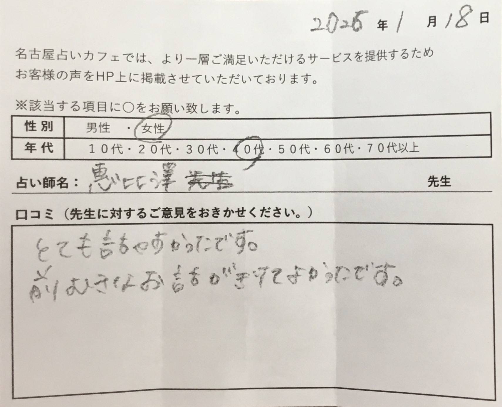 「話して、ないことまで当たっていて驚いた」