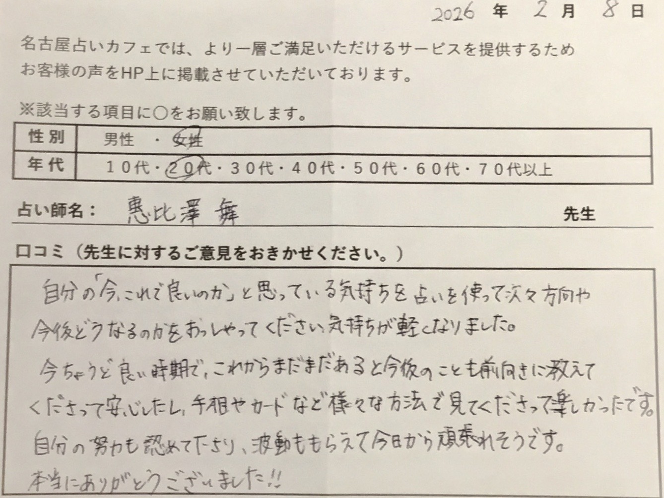 この特別な機会に、ぜひ惠比澤舞先生の鑑定をご体験ください✨